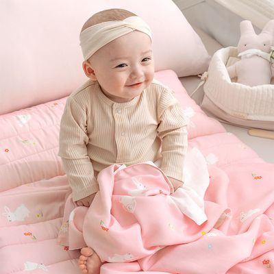 韓國 Formongde - 高級純棉/涼感嫘縈四季用5cm厚墊睡袋組-粉紅格紋兔