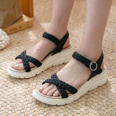 韓國 PINKELEPHANT - 防水X防滑彈性編織帶輕量厚底涼鞋(5cm)-黑