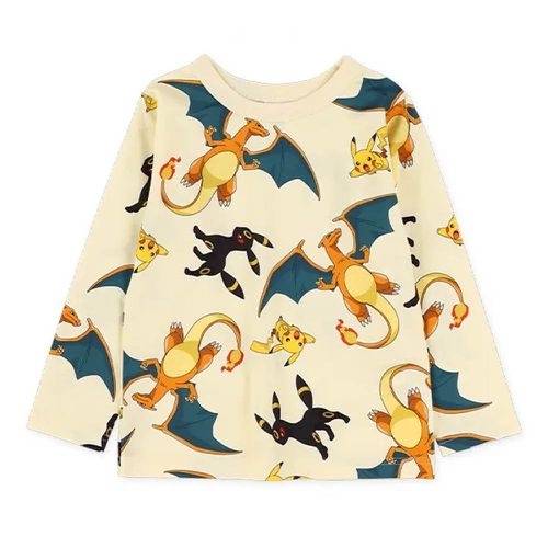 日本西松屋 - 限量聯名 印花長袖上衣-卡通人物寶可夢-象牙白