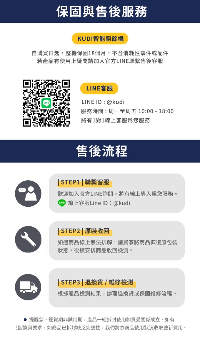 注意事項:「攪拌桶內部材質屬特氟龍不沾塗層,不沾塗層較好清洗,但在機器運作中,攪拌刀與廚餘會產生阻力與摩擦,塗層將會產生刮痕或脫落屬正常現象,如買家介意,請斟酌下單」 ⚠️ 產品保固期限統一依照上述商品內文說明為準。 ⚠️ 保固商品務必保留完整包裝,以免喪失保固權益。 ⚠️ 如遇新品瑕疵,請於7日鑑賞期內進行退換貨申請,逾期恕不受理。 ⚠️ 收到包裹後請務必進行開箱錄影,並請一鏡到底以保障雙方權益。 ⚠️ 退換貨外包裝及商品經檢查後,若有使用痕跡將酌收整新費。