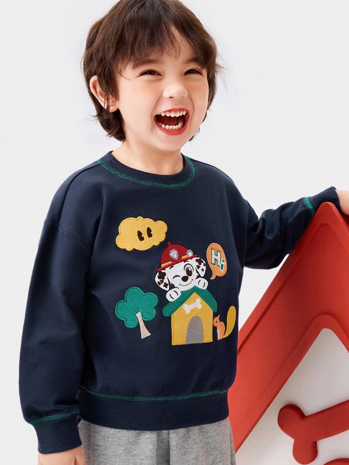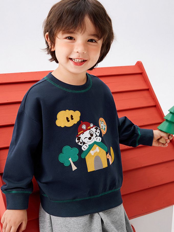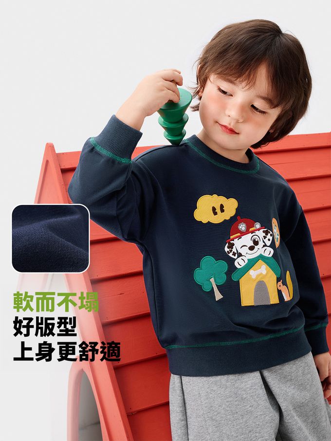 卡通汪汪隊貼布繡長袖上衣/大學T-卡通人物毛毛-藏青