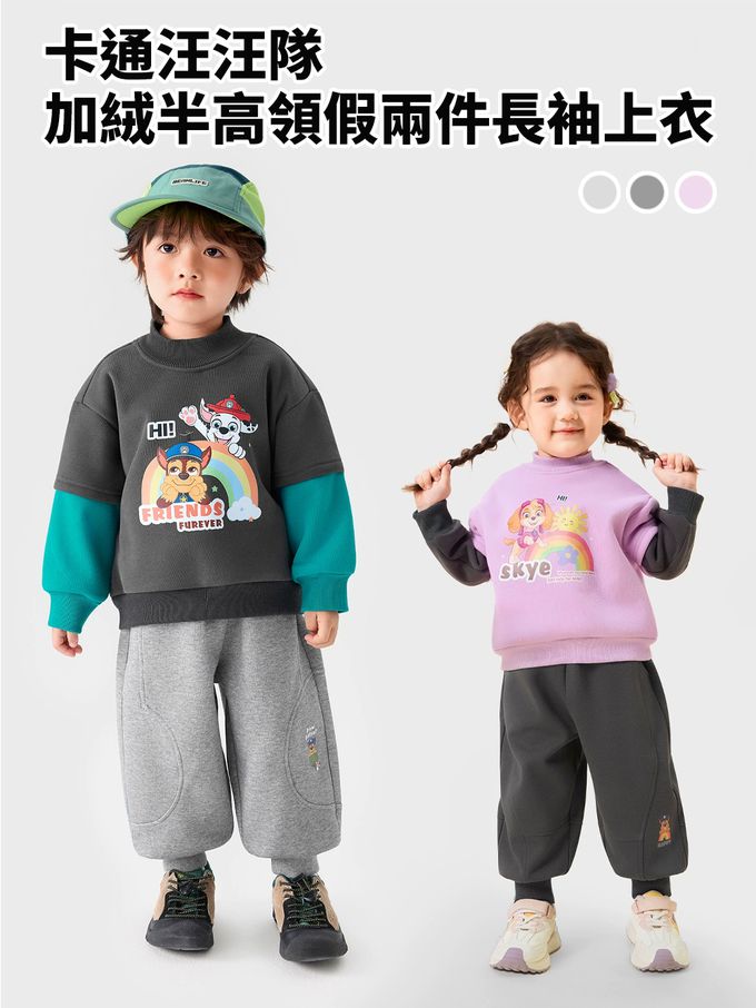 品名:卡通汪汪隊加絨半高領假兩件長袖上衣