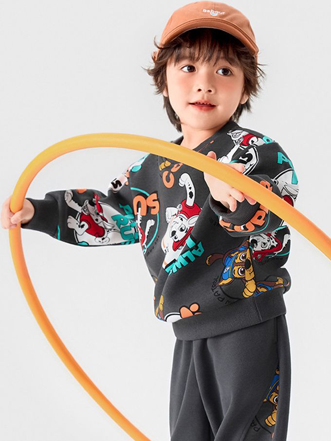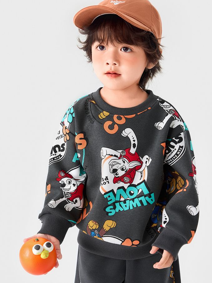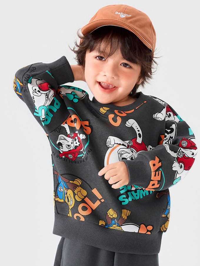 卡通汪汪隊滿版印花長袖上衣/大學T-深灰
