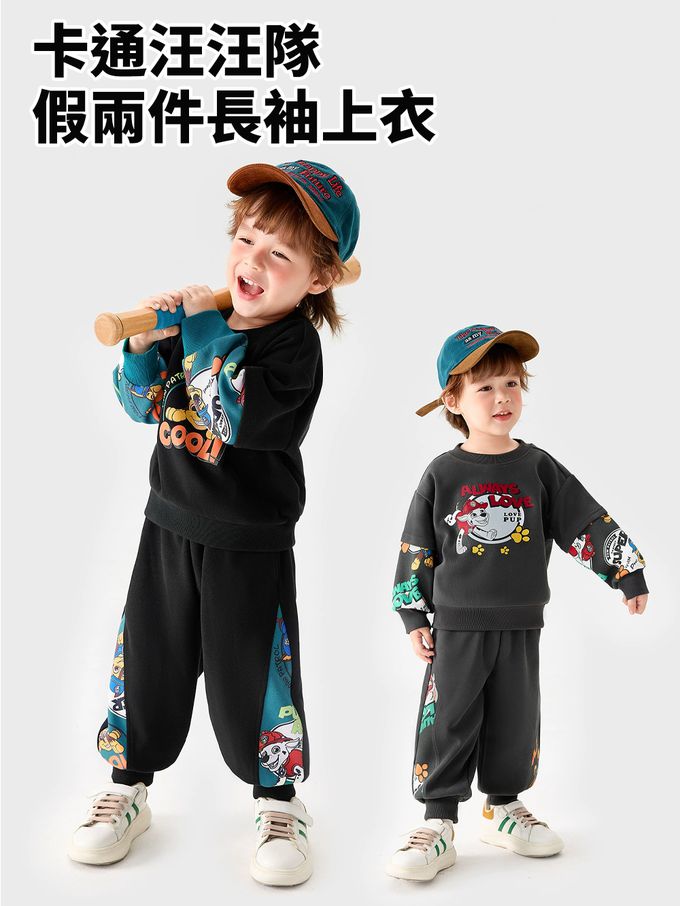 • 品名:卡通汪汪隊假兩件長袖上衣/大學T