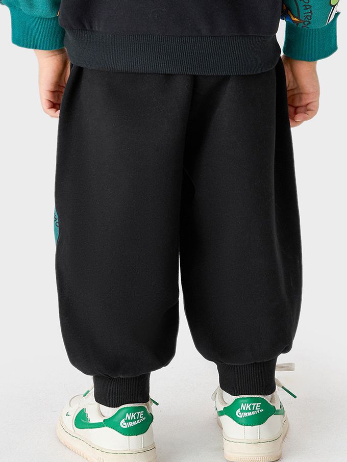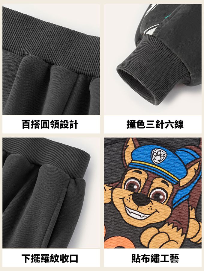 卡通汪汪隊彈性運動束口長褲-拼色印花-黑色