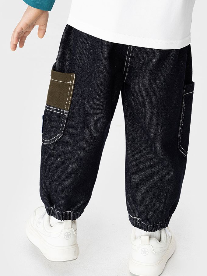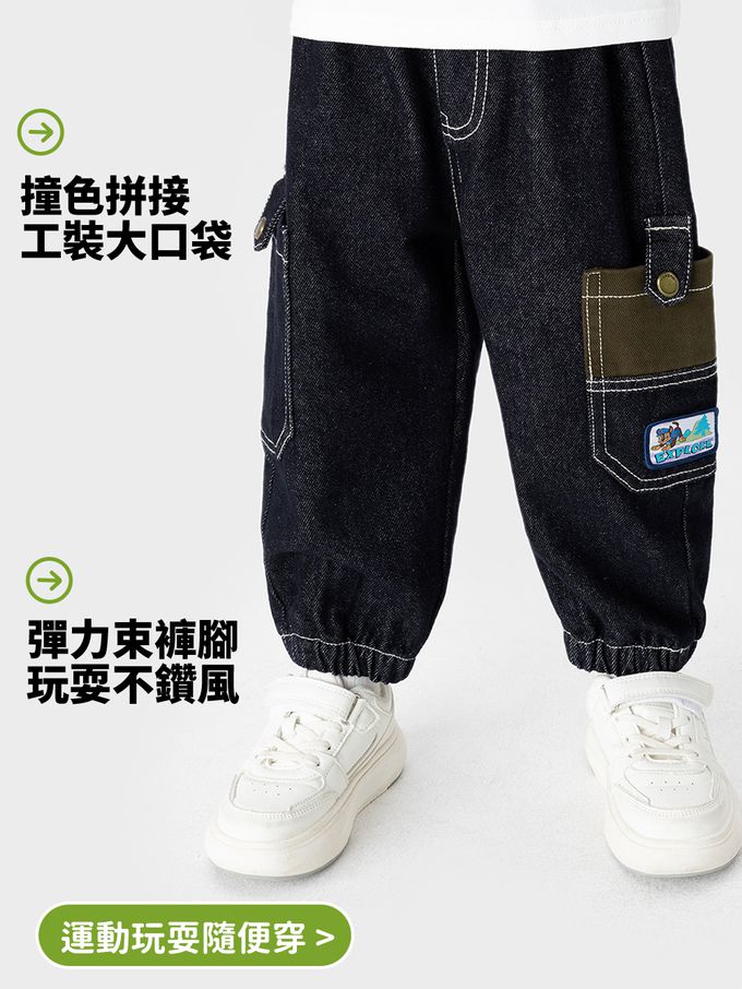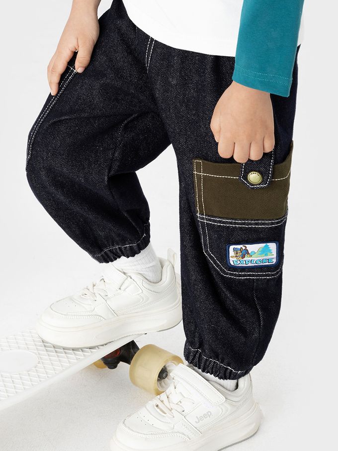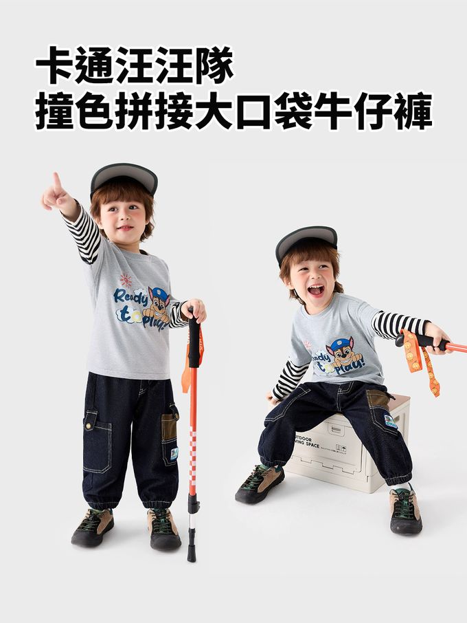 品名:卡通汪汪隊撞色拼接大口袋牛仔褲