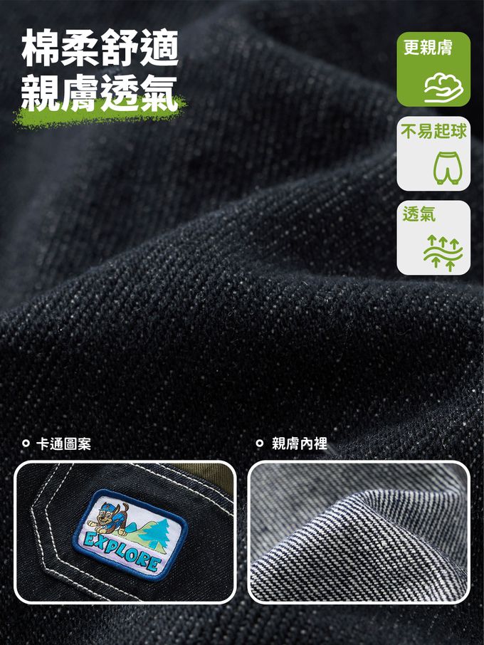 卡通汪汪隊撞色拼接大口袋牛仔褲-卡通人物阿奇-深牛仔藍