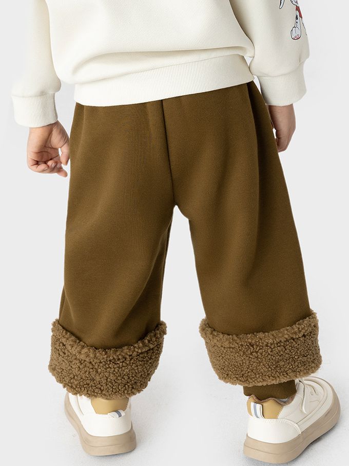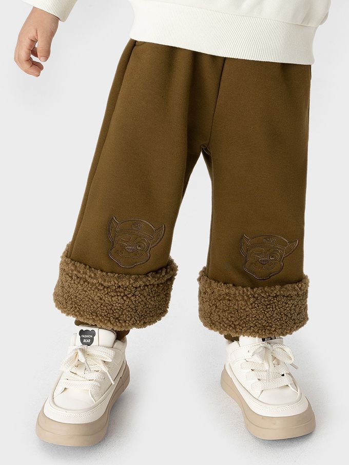 人氣卡通 - 卡通汪汪隊加絨毛邊長褲-卡通人物阿奇-棕色