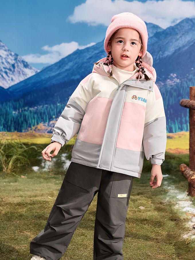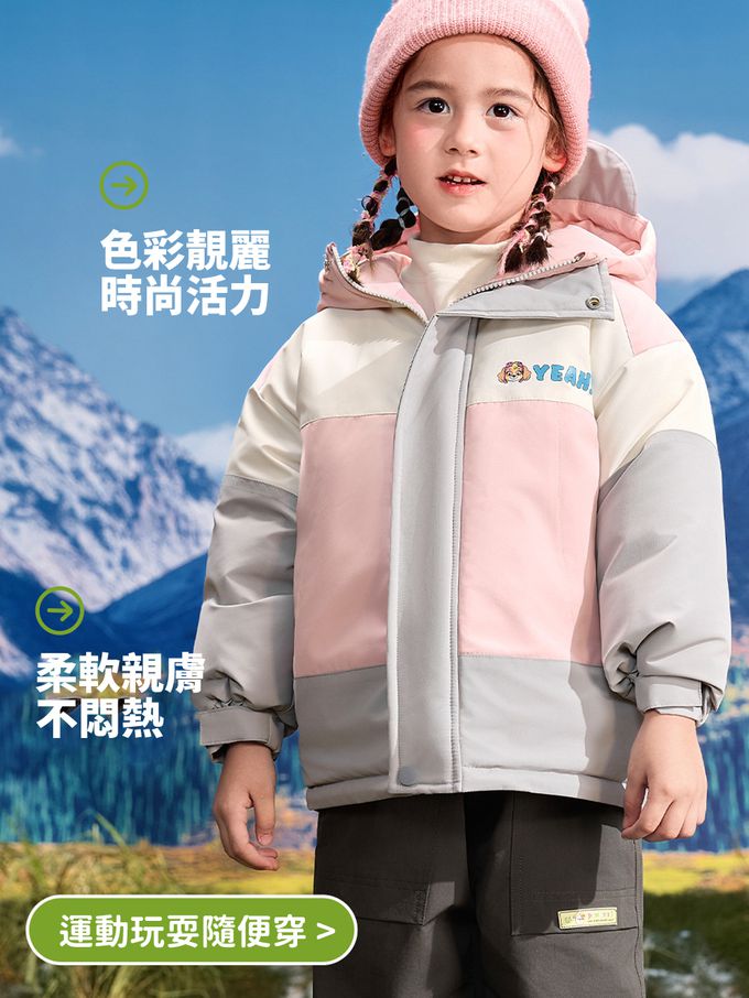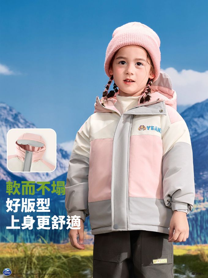 卡通汪汪隊加厚鋪棉連帽外套-卡通人物天天-拼色粉