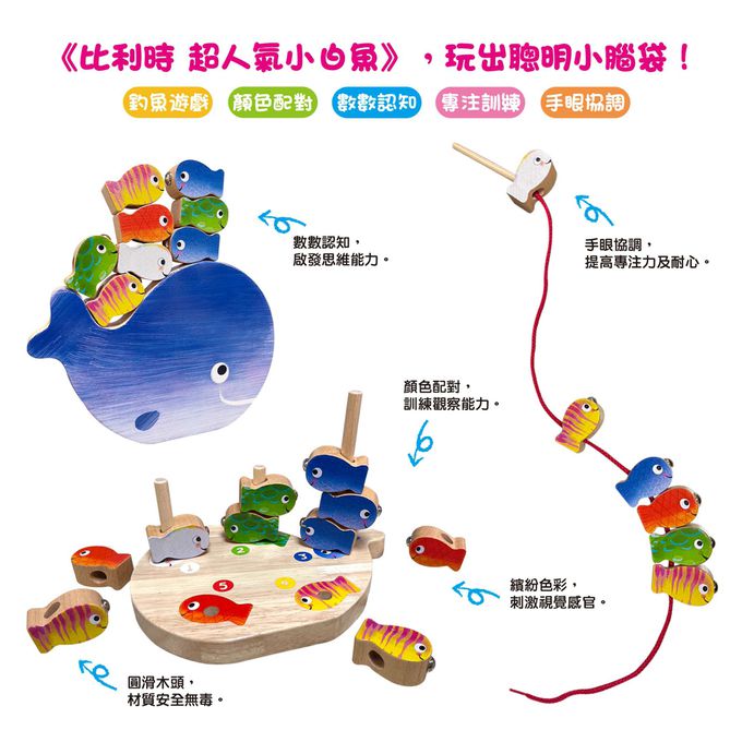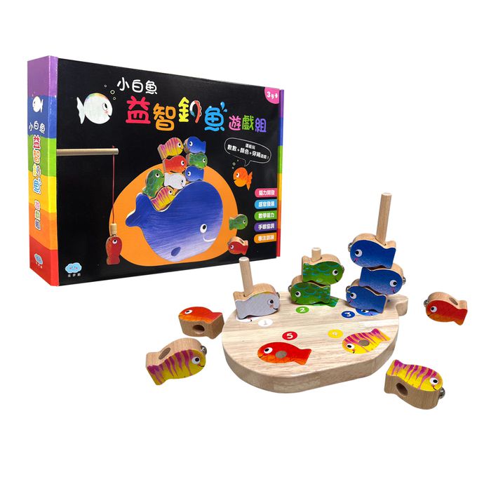 (內附1組遊戲墊+1個大鯨魚底座+1支磁性釣竿+1條穿繩+15隻彩色小魚+5根數數木棍)