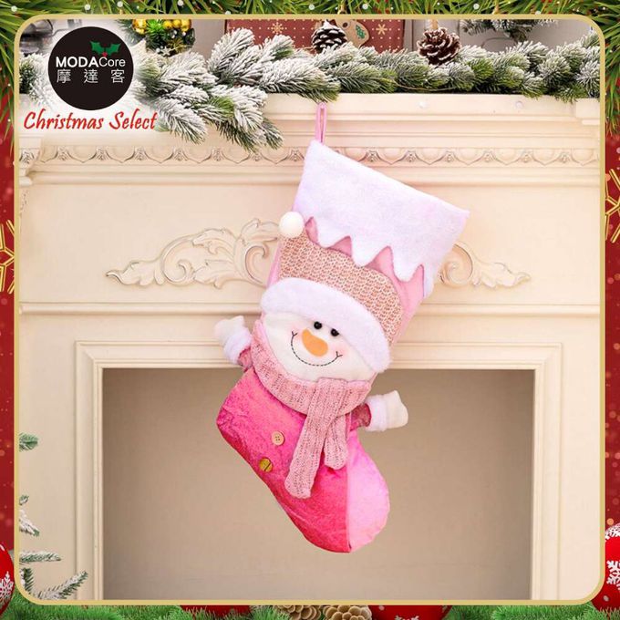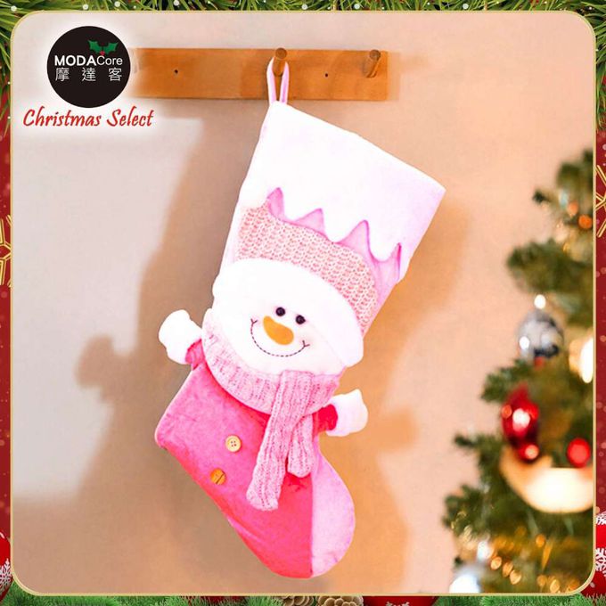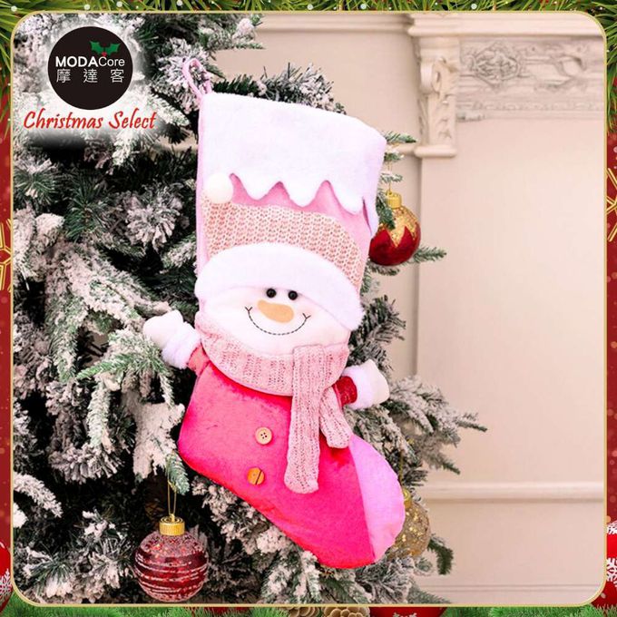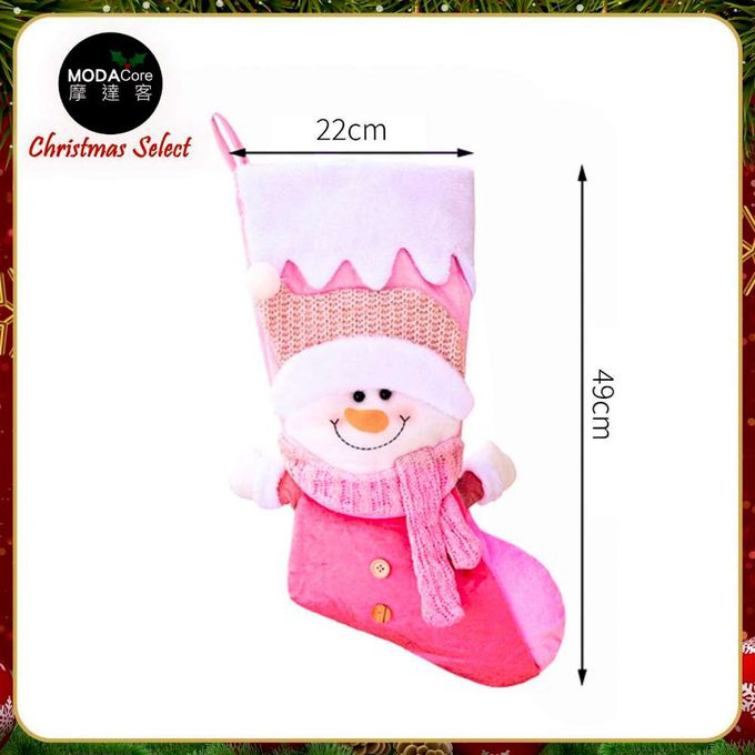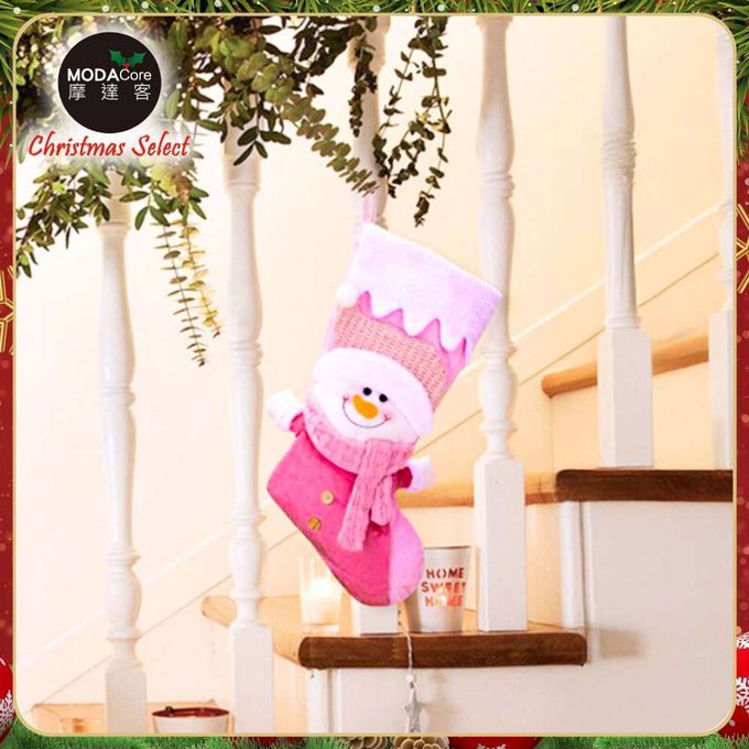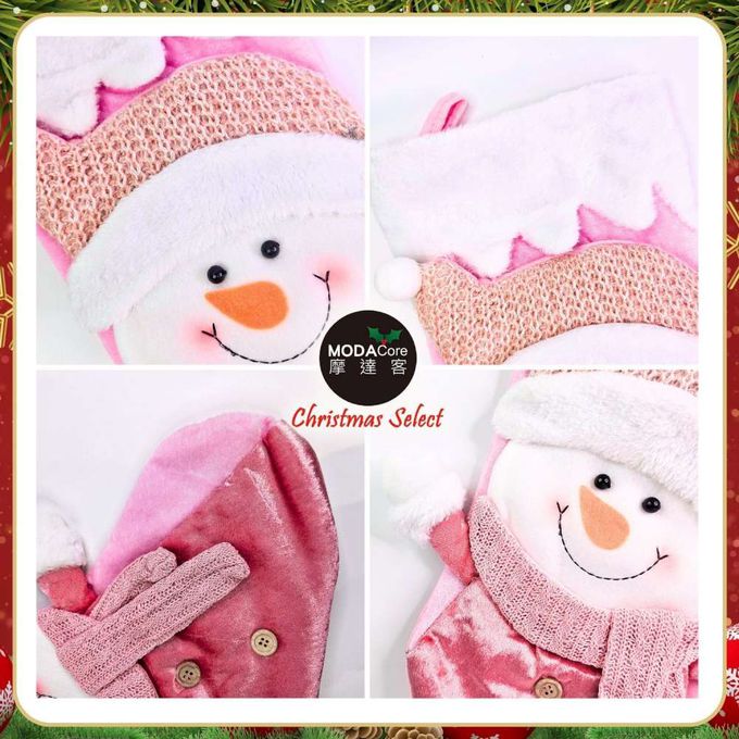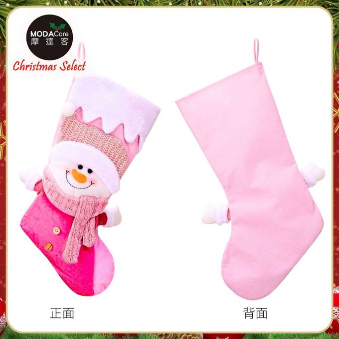 品名:耶誕-夢幻聖誕雪人絨布粉紅聖誕襪