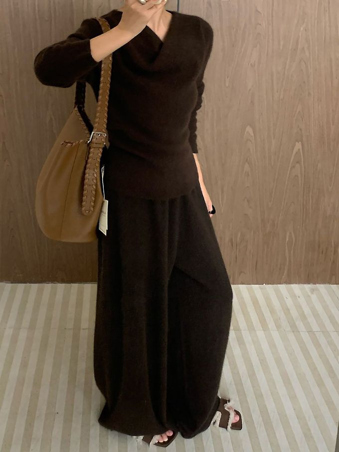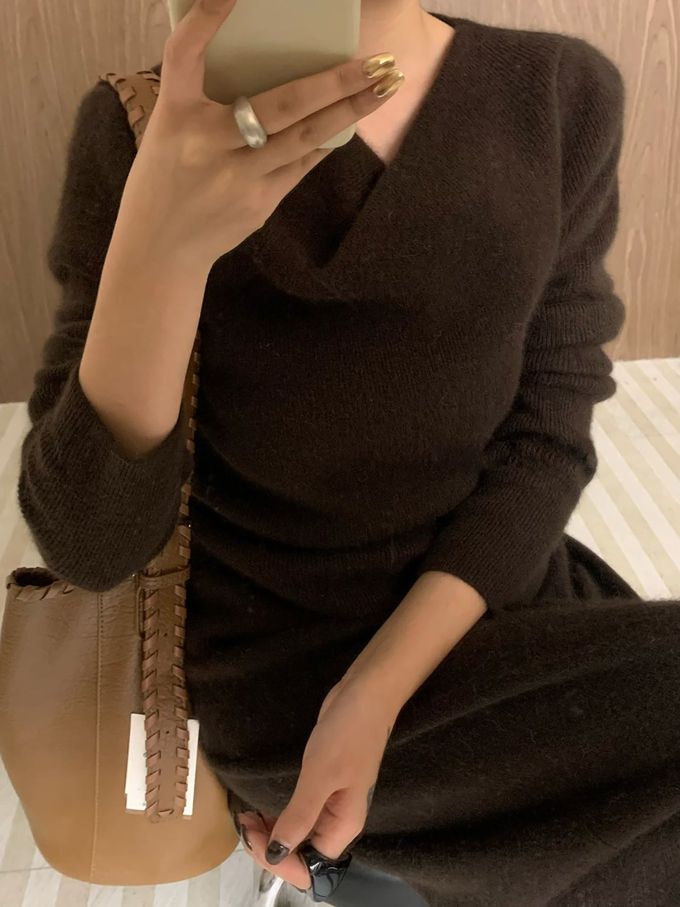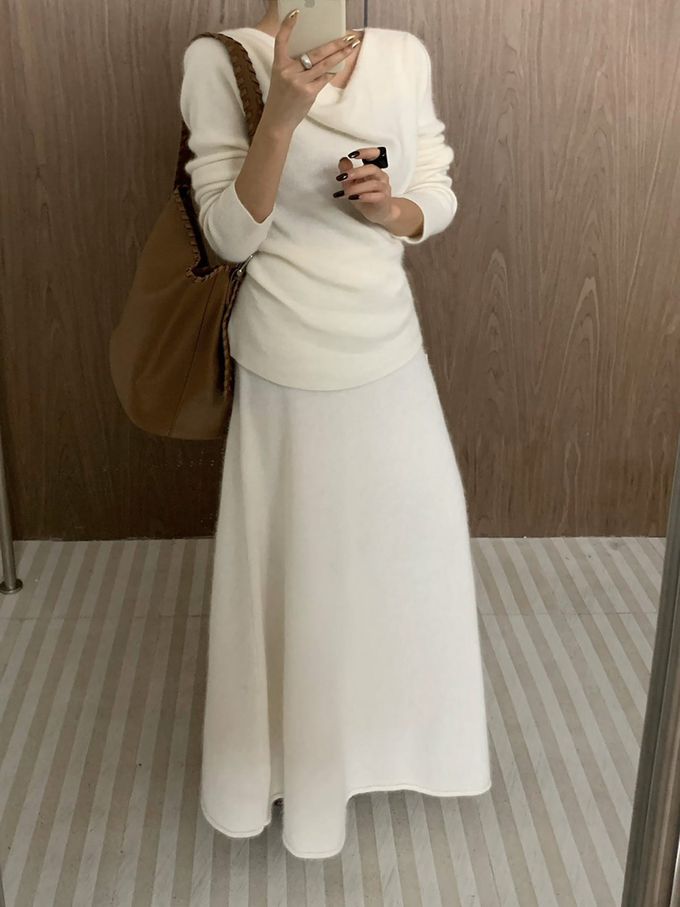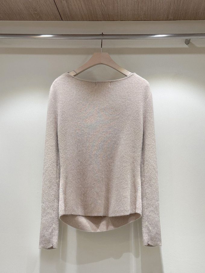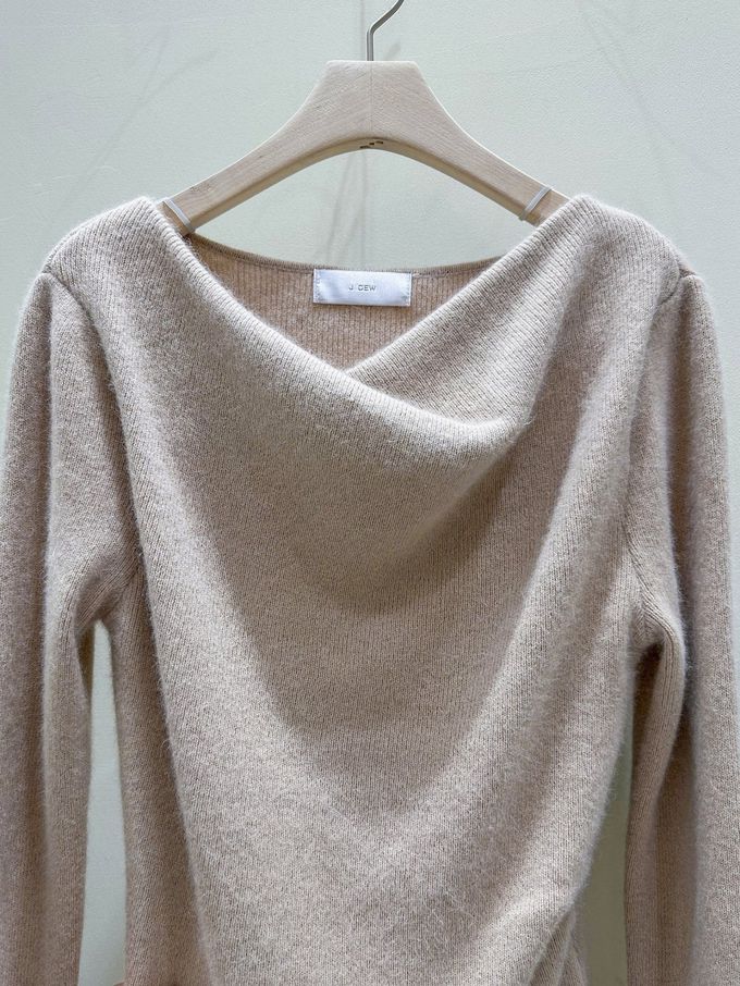 • 品名:溫柔垂墜領腰際抓褶羊毛針織上衣