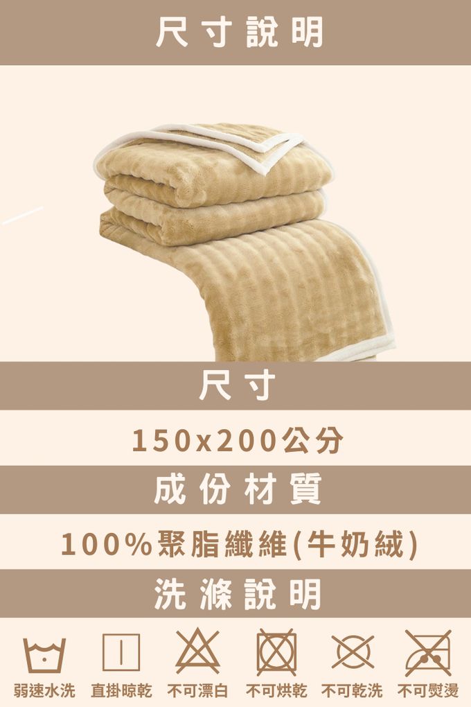 洗滌/清潔建議:可水洗、不可烘乾、不可漂白、不可熨燙、不可乾洗