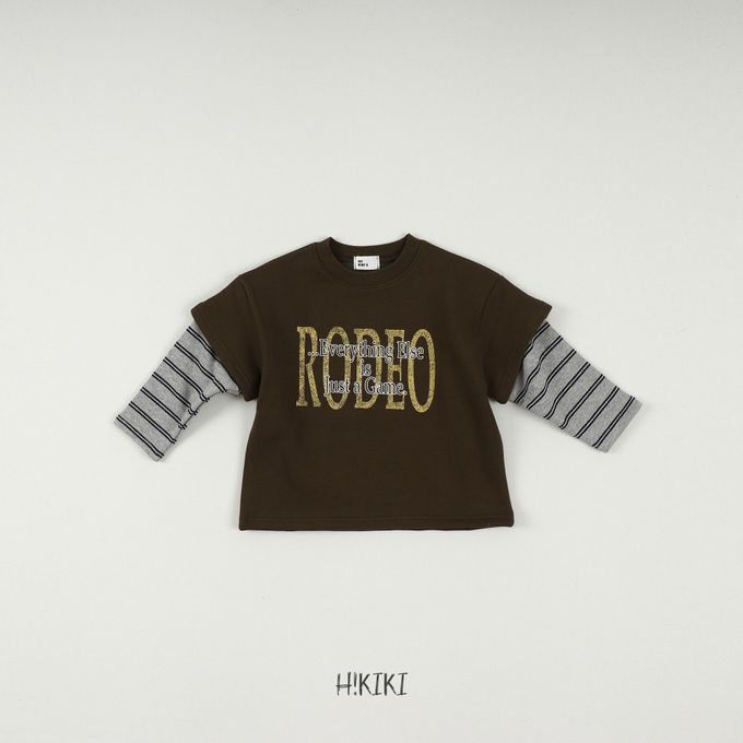 韓國南大門童裝 - HIKIKI (內磨毛)復古刷色文字假兩件長袖上衣-軍綠X灰