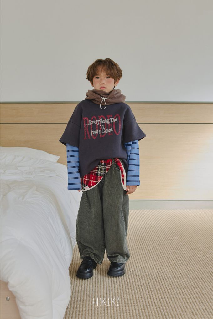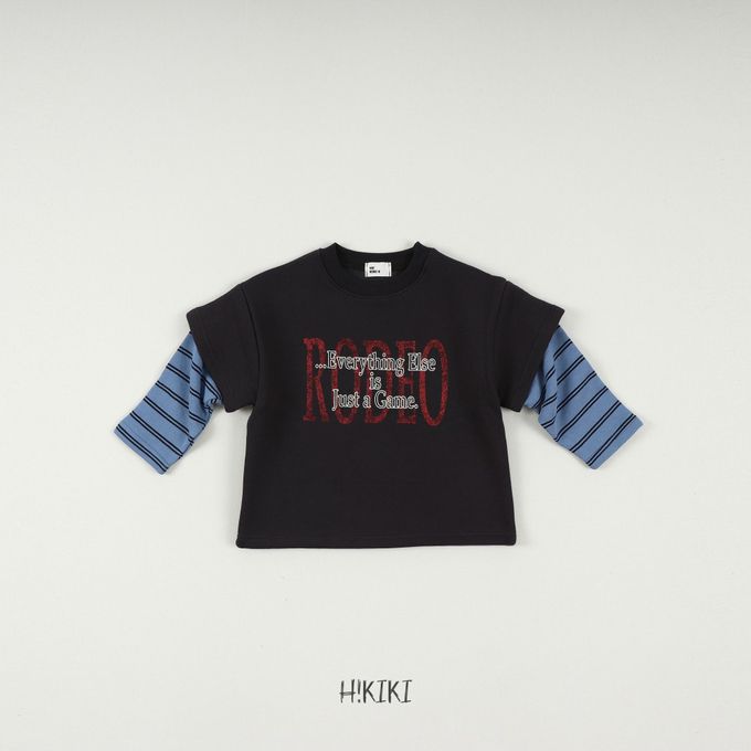 韓國南大門童裝 - HIKIKI (內磨毛)復古刷色文字假兩件長袖上衣-深灰X淺藍