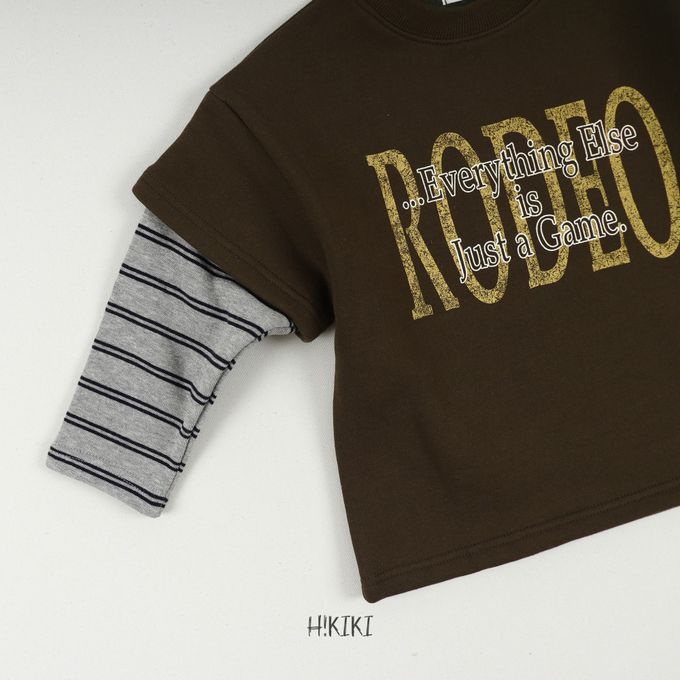 • 品名:HIKIKI (內磨毛)復古刷色文字假兩件長袖上衣