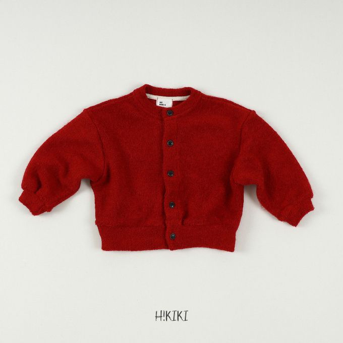 韓國南大門童裝 - HIKIKI 溫暖圈圈針織無領鈕扣外套-紅
