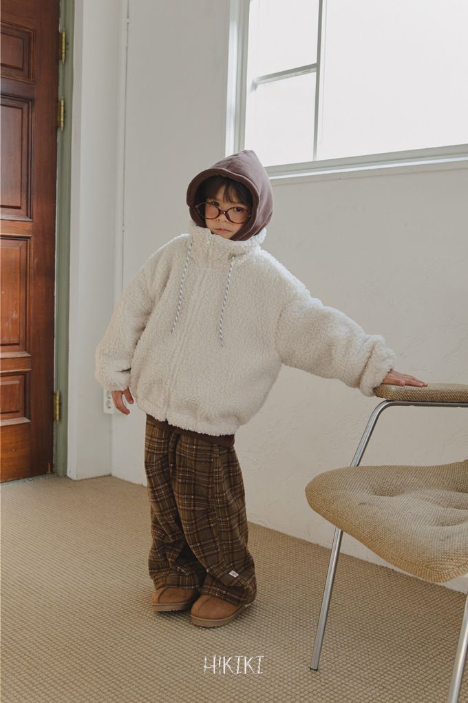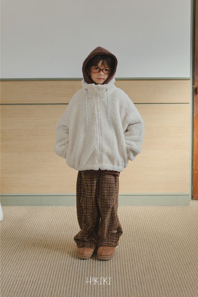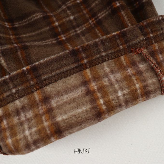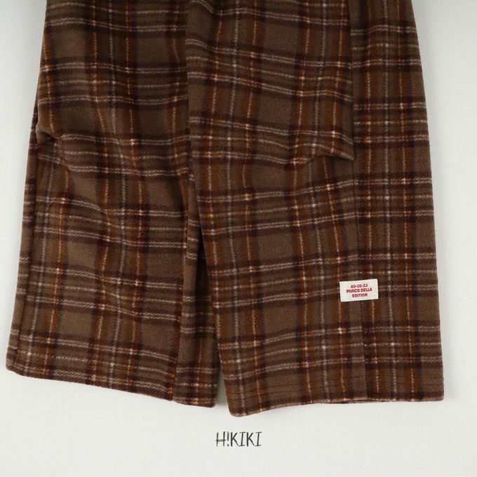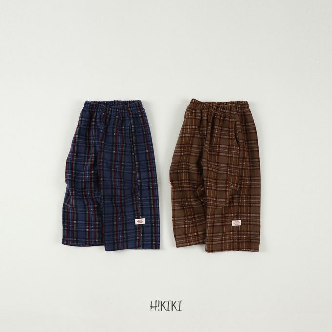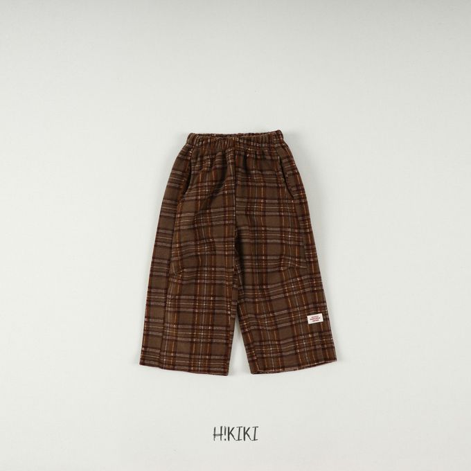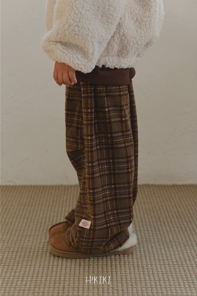 韓國南大門童裝 - HIKIKI 鬆緊腰經典格紋毛呢感落地長褲-咖啡