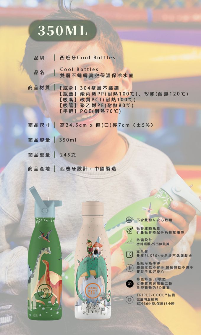材質:【瓶身】304雙層不鏽鋼、【瓶蓋】聚丙烯PP〈耐熱溫度 100度C〉、矽膠〈120度C〉、【吸嘴】改質PCT〈耐熱溫度 100度C〉、【吸管】聚乙烯PE〈耐熱溫度 80度C〉、【手把】POE〈耐熱溫度 70度C〉