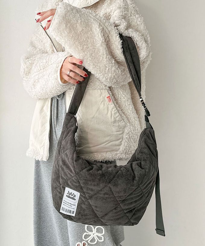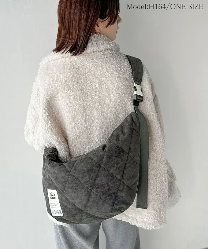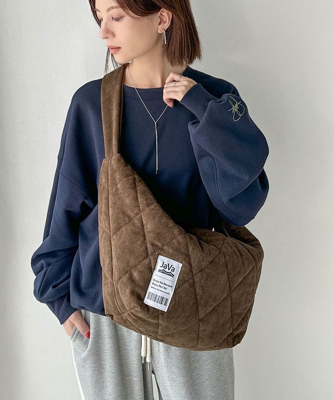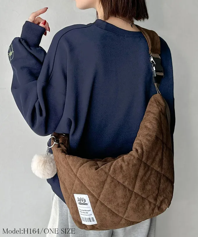 • 品名:Java 大容量麂皮感菱格休閒側背包