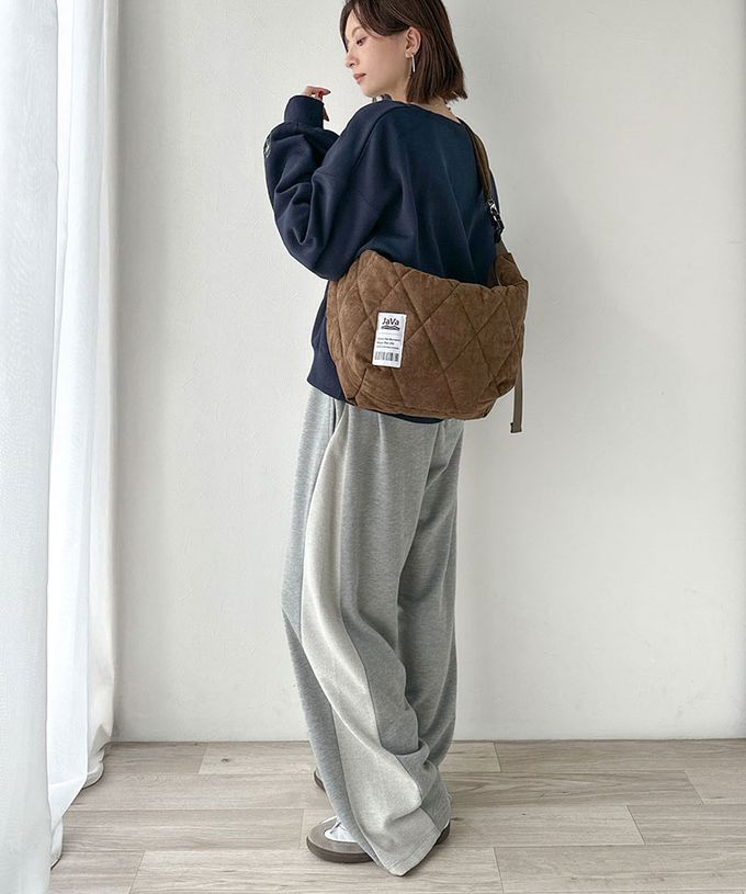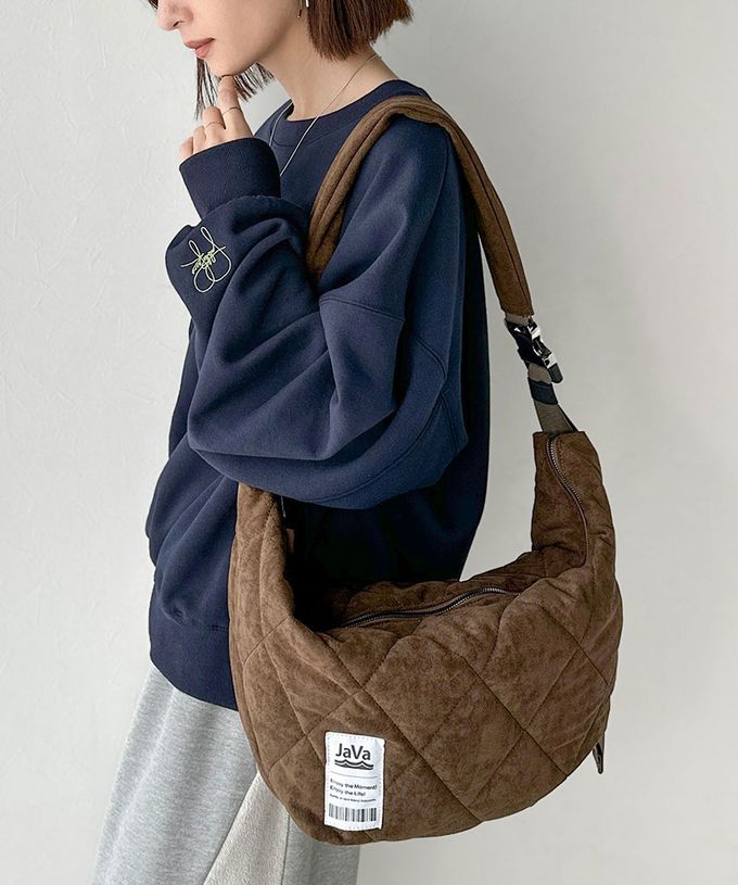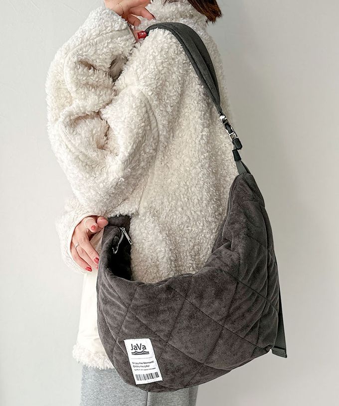 • 品名:Java 大容量麂皮感菱格休閒側背包