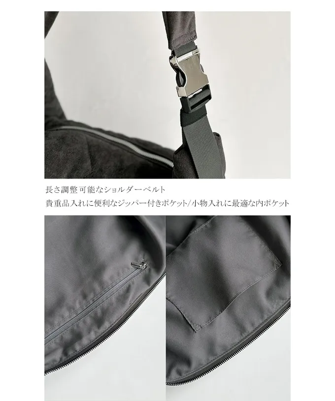 日本 Classical Elf - Java 大容量麂皮感菱格休閒側背包-炭灰