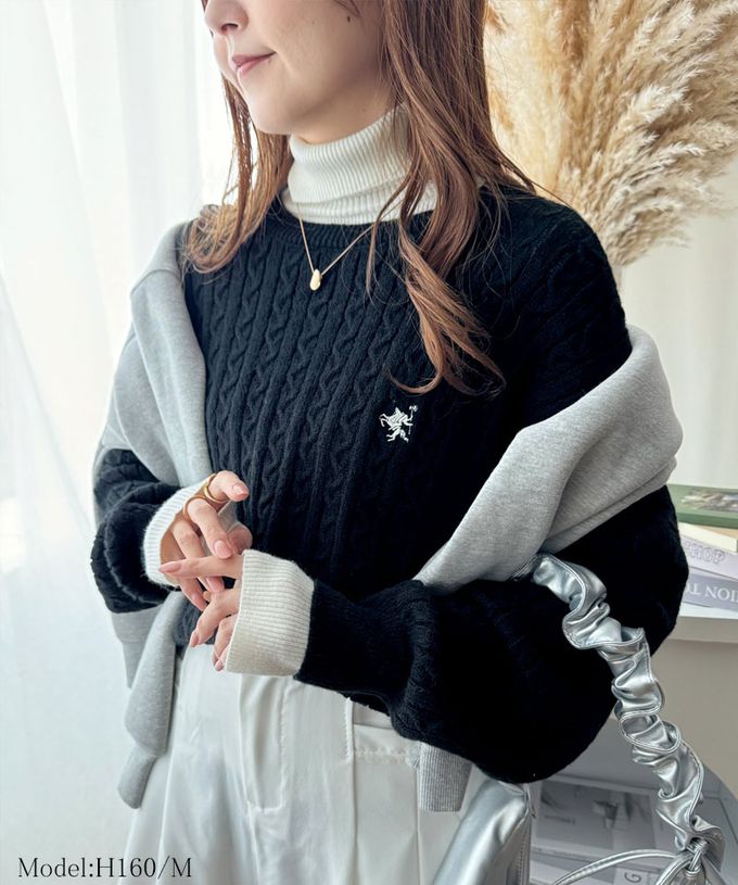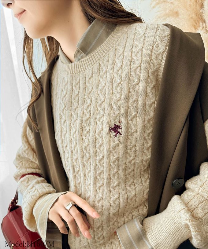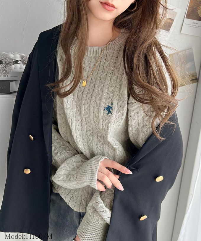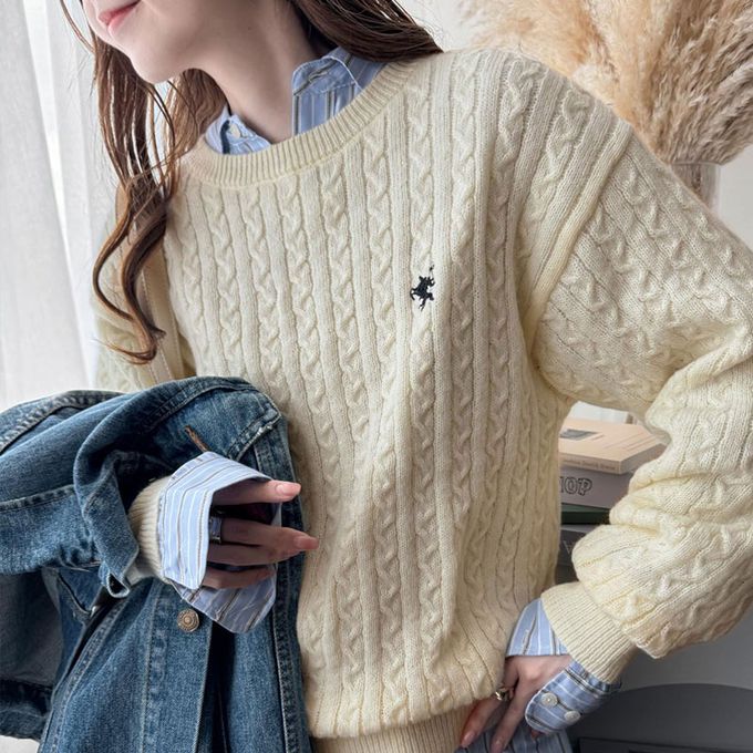 • 品名:刺繡logo 優雅學院風麻花針織上衣