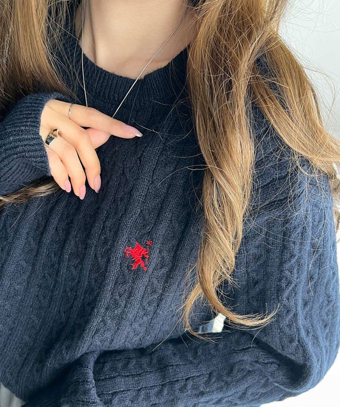 日本 Classical Elf - 刺繡logo 優雅學院風麻花針織上衣-海軍藍