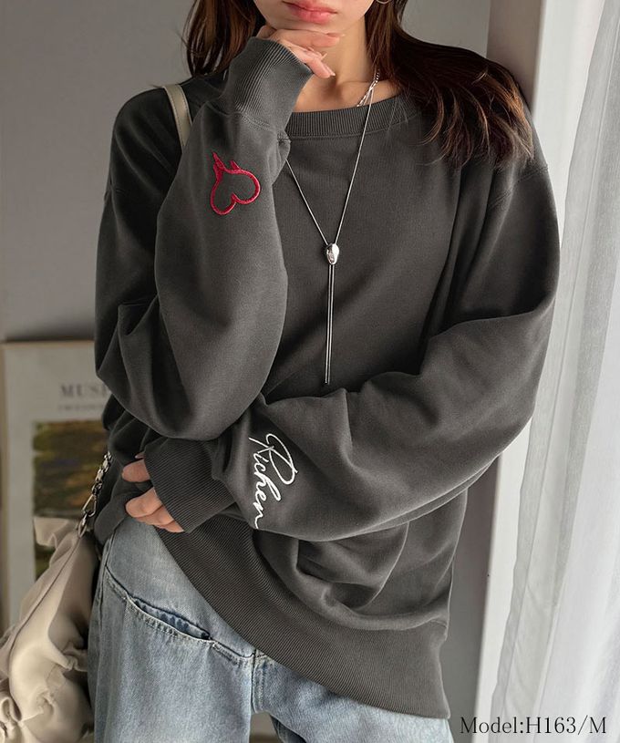 • 品名:低調可愛刺繡一字領裏毛長袖上衣
