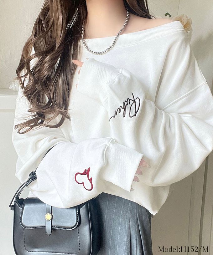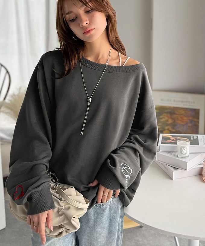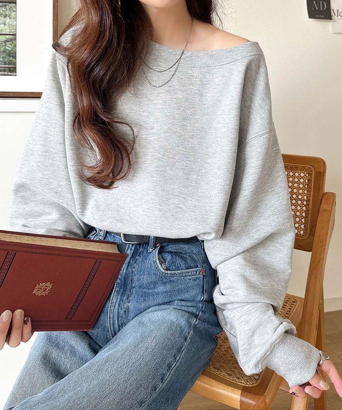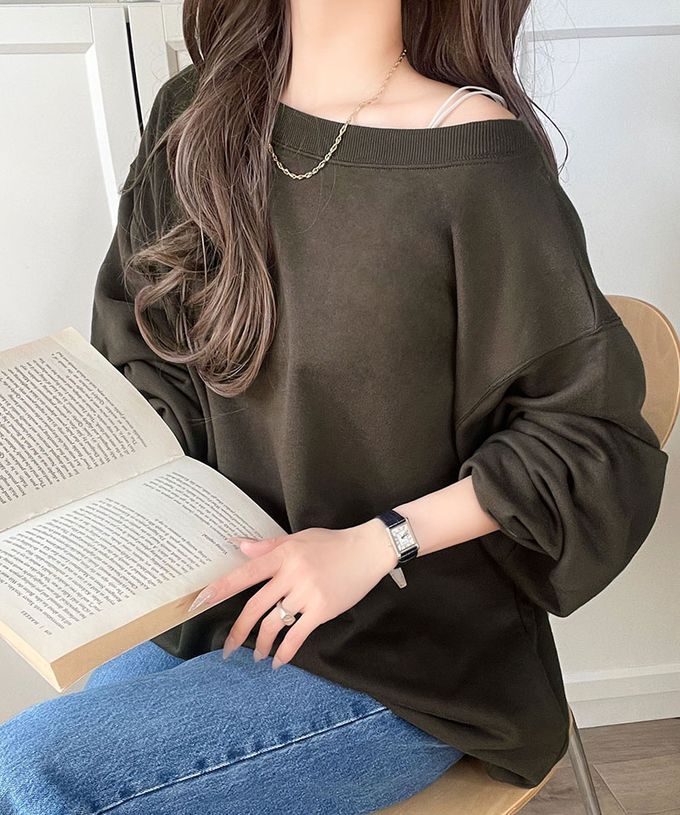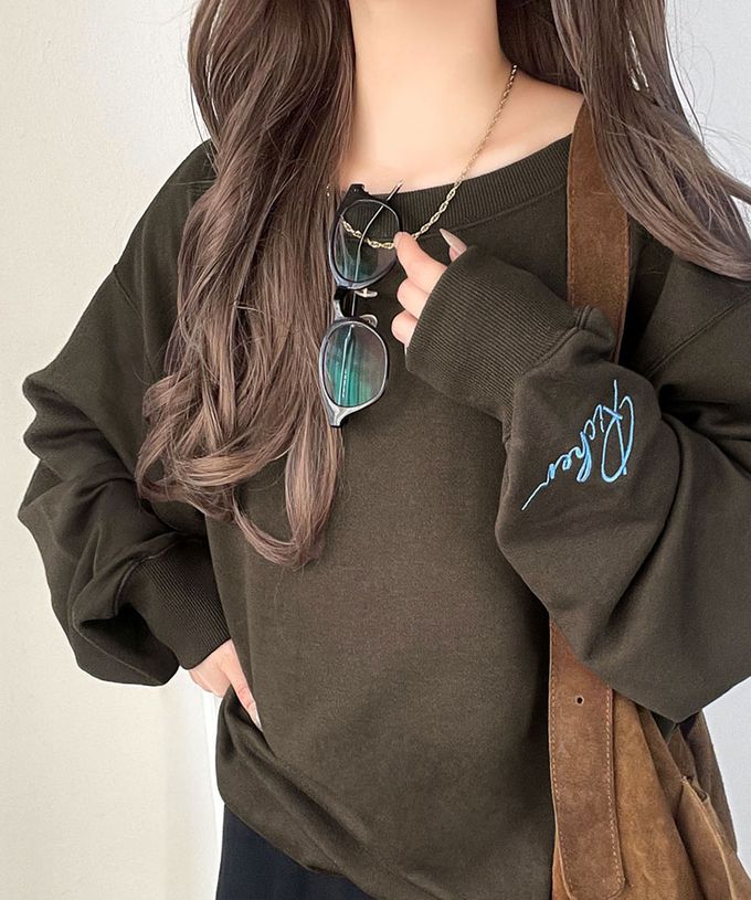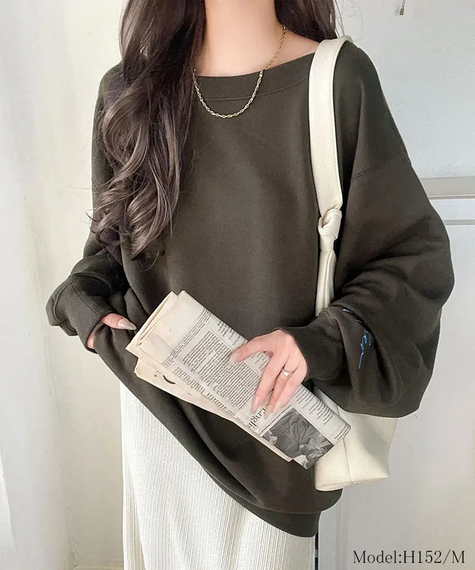 • 品名:低調可愛刺繡一字領裏毛長袖上衣