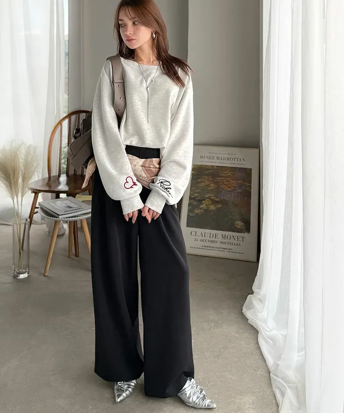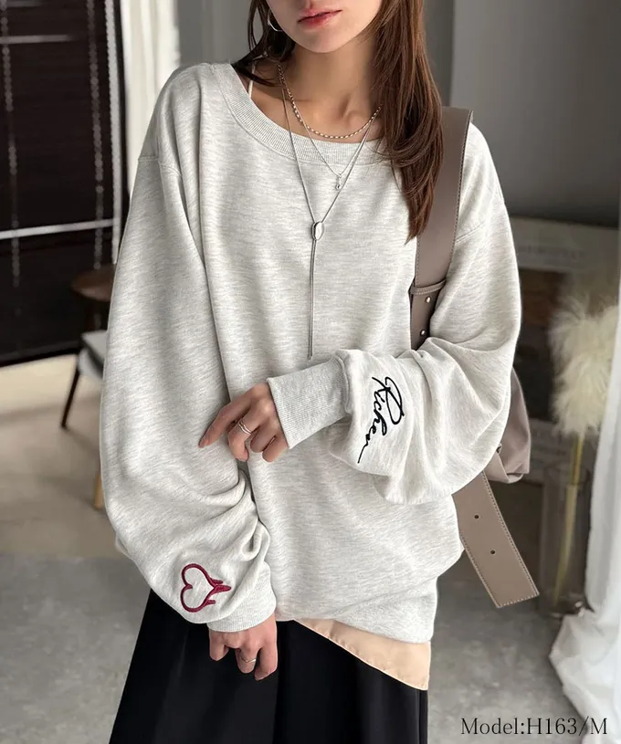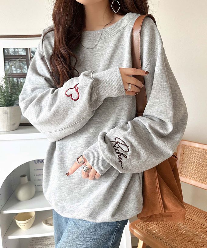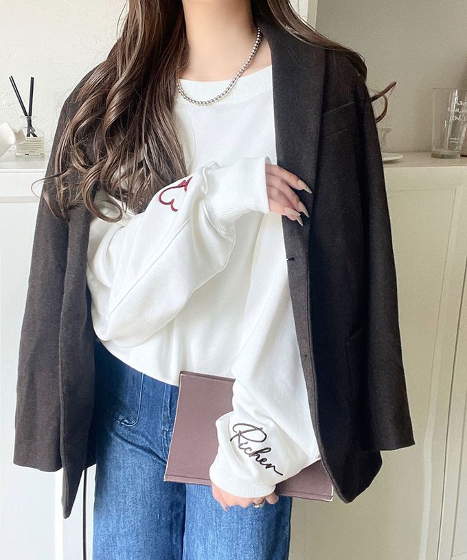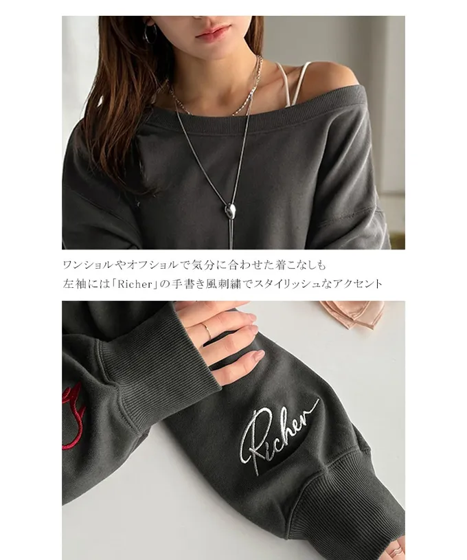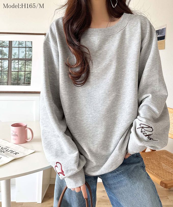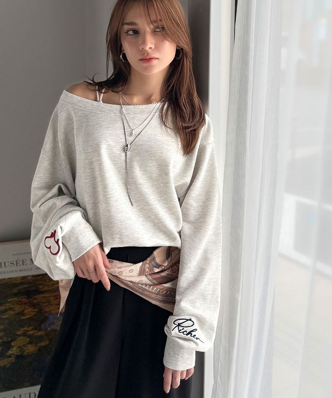 • 品名:低調可愛刺繡一字領裏毛長袖上衣