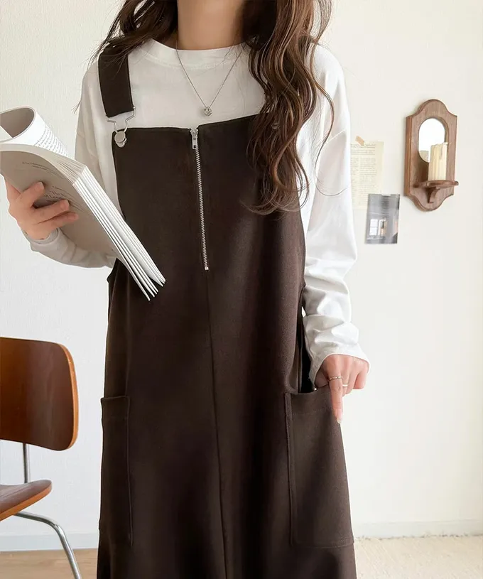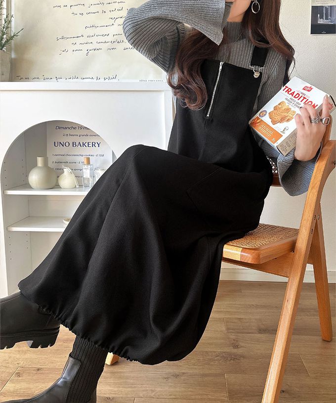 • 品名:修身拉鍊俏皮燈籠下擺吊帶洋裝