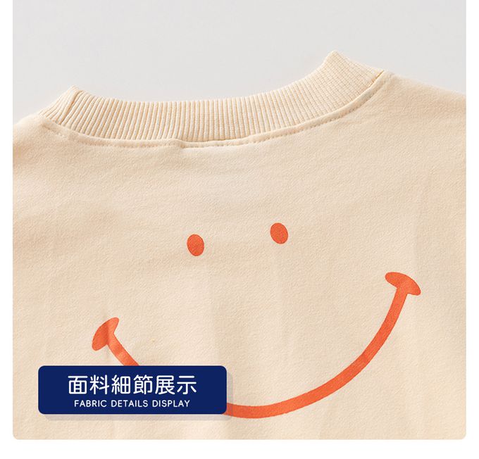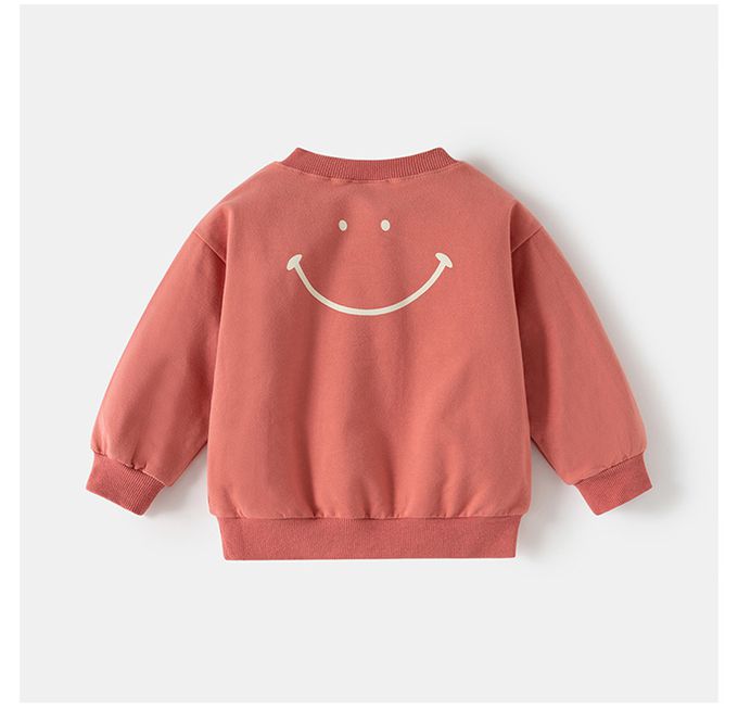 圓領棉質長袖上衣/大學T-微笑-橘紅