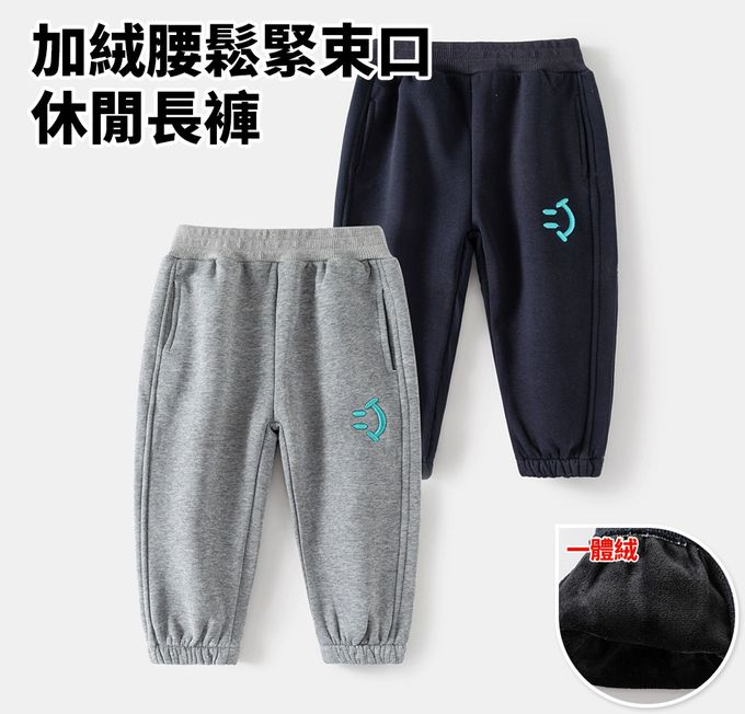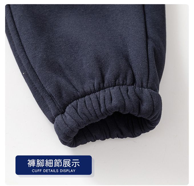 加絨腰鬆緊束口休閒長褲-微笑-藏青