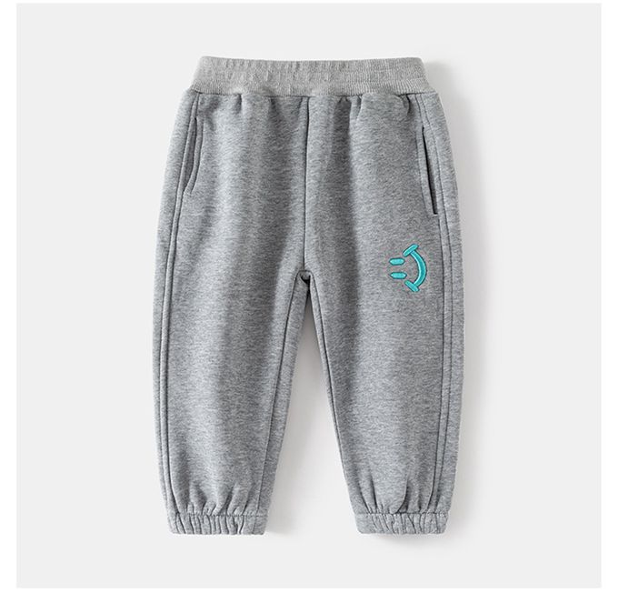 WELLKIDS - 加絨腰鬆緊束口休閒長褲-微笑-灰色