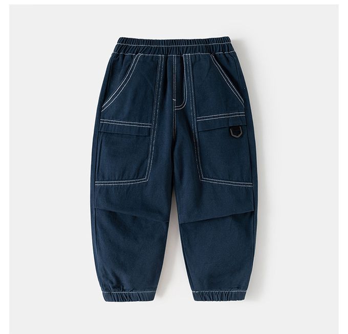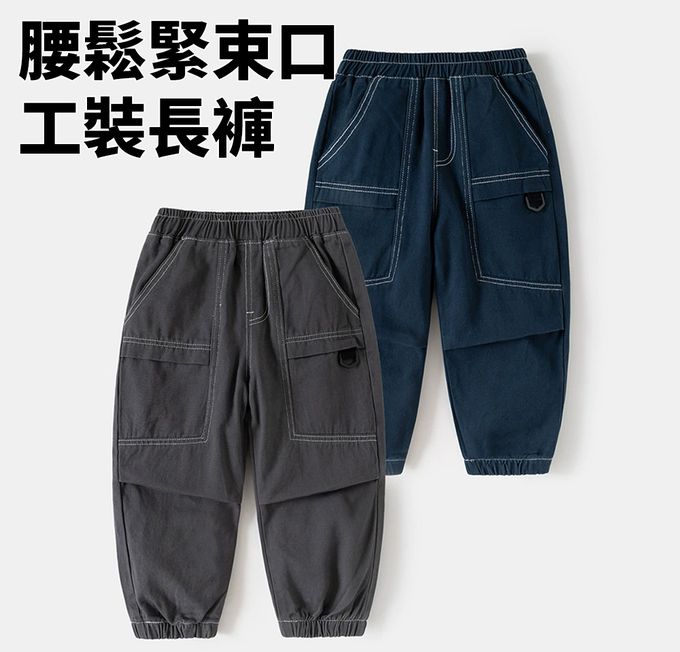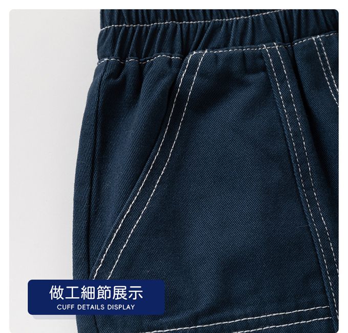 腰鬆緊束口工裝長褲-打褶車線-藏青