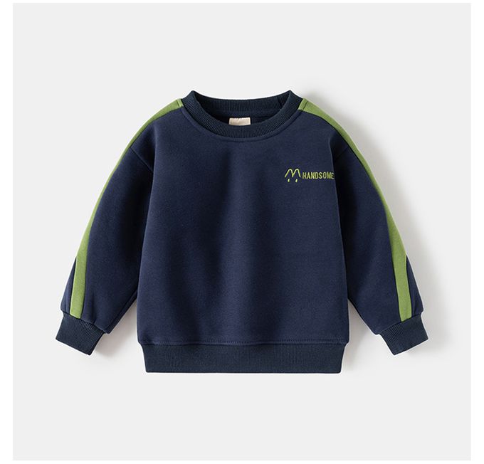 WELLKIDS - 加絨圓領長袖大學T套裝-帥氣線條-藏青