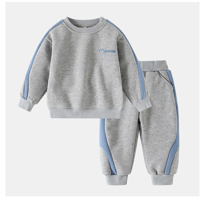 WELLKIDS - 加絨圓領長袖大學T套裝-帥氣線條-藏青