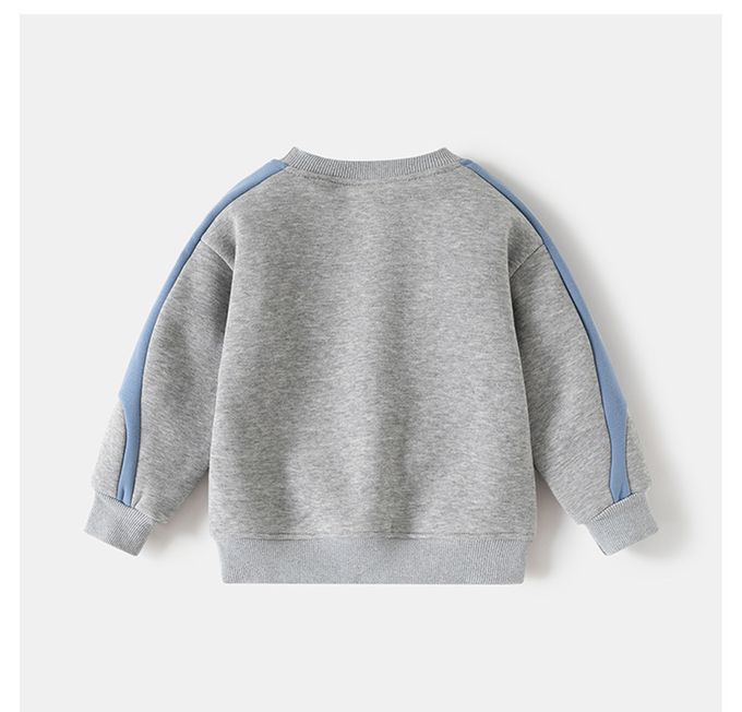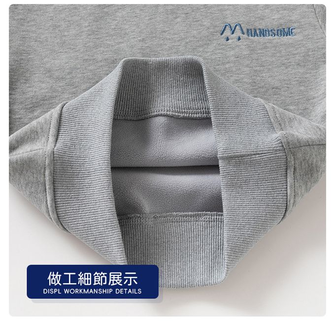 加絨圓領長袖大學T套裝-撞色線條-灰色