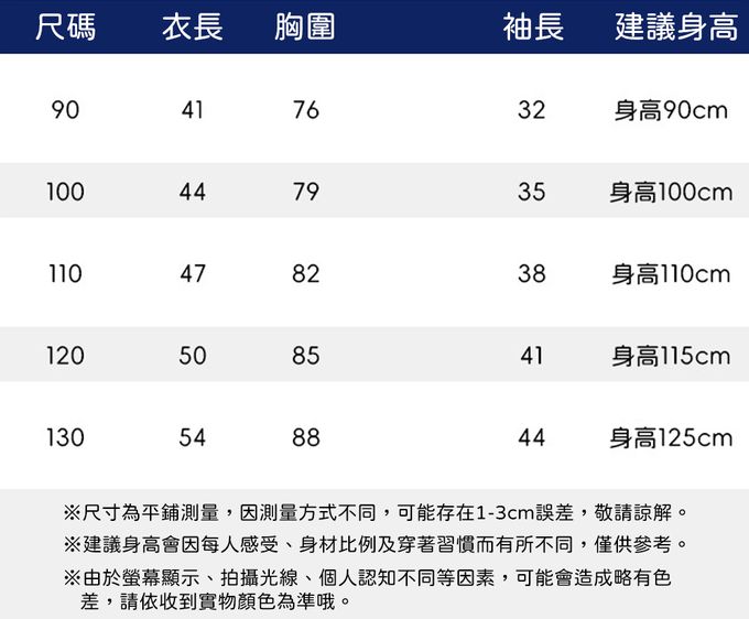 90cm、100cm、110cm、120cm、130cm