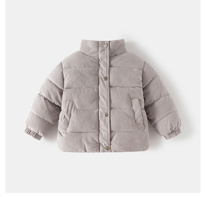 保暖燈芯絨鋪棉外套-淺灰