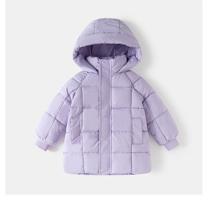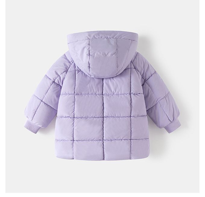 中長款保暖鋪棉連帽外套-格子壓紋-紫色