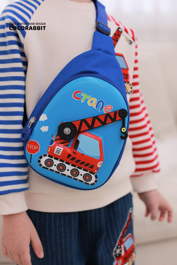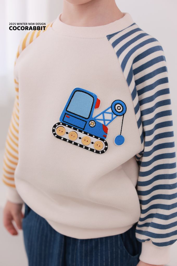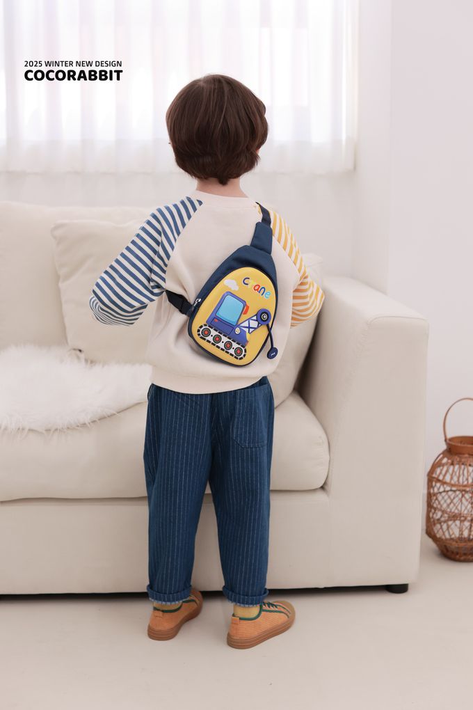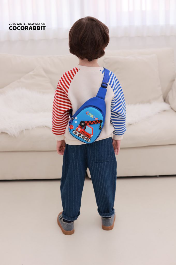 韓國南大門童裝 - Coco rabbit (附包包,內磨毛)撞色條紋長袖大學T-紅色吊車-藍X紅