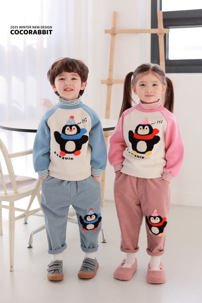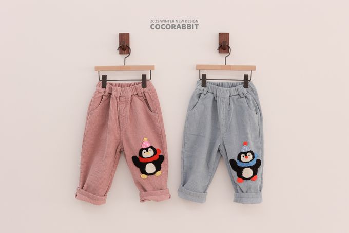 韓國南大門童裝 - Coco rabbit (內磨毛)鬆緊腰休閒長褲-毛絨企鵝-霧灰藍
