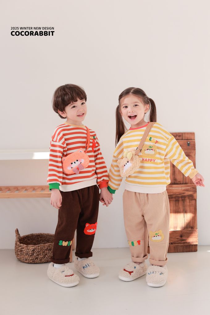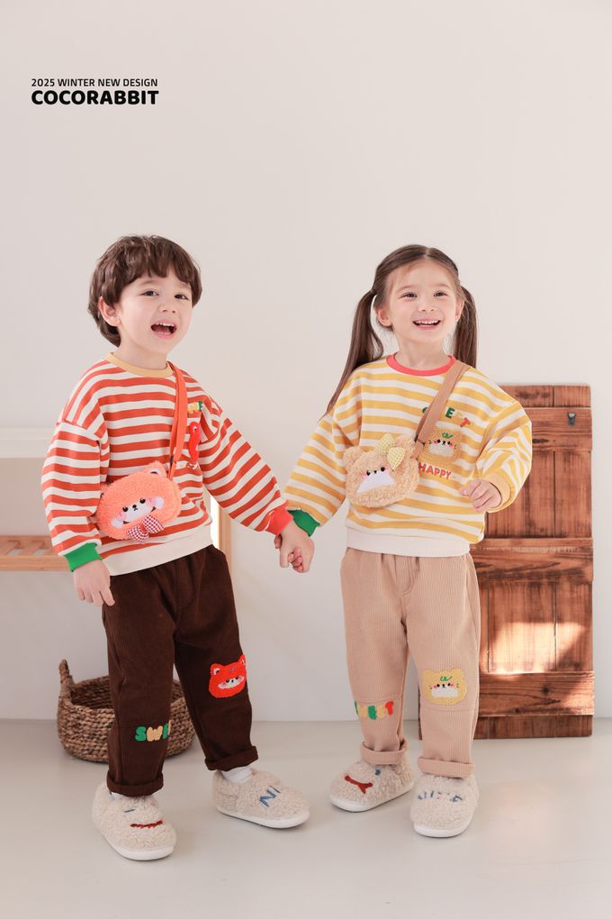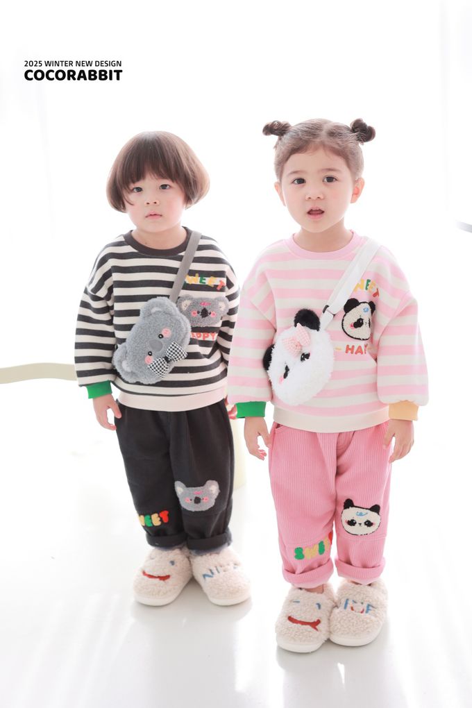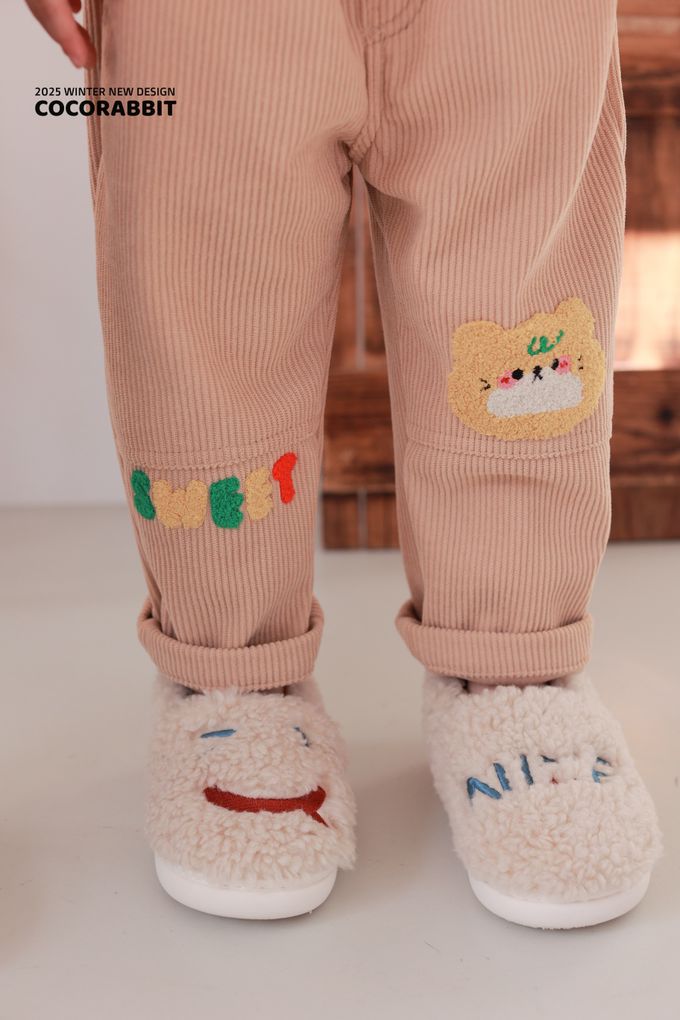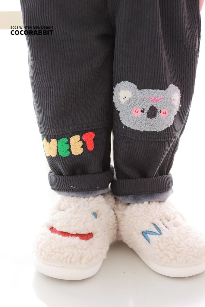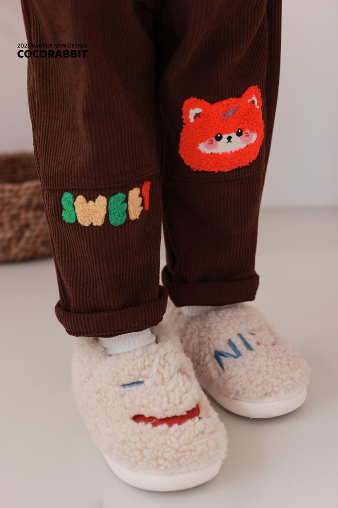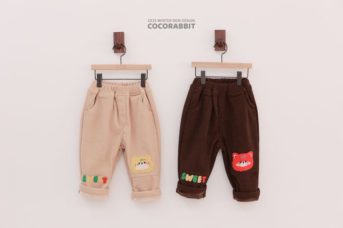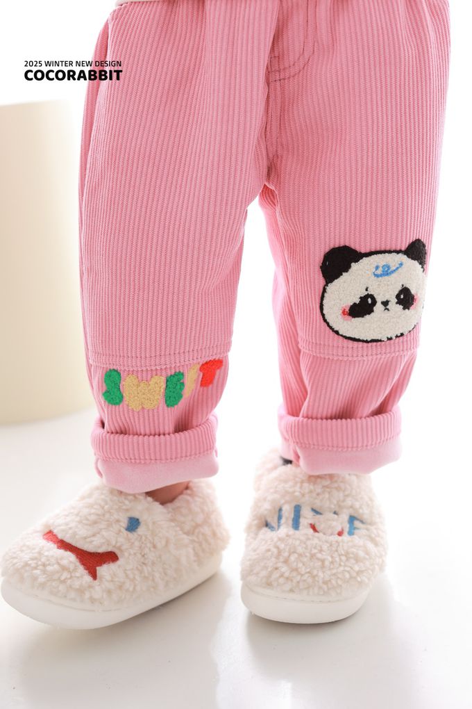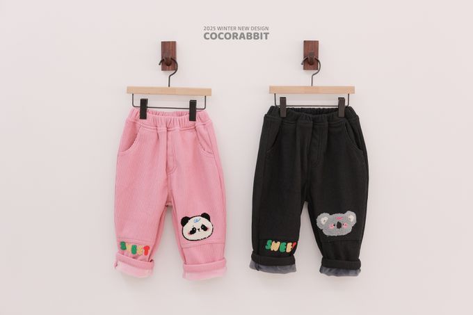 韓國南大門童裝 - Coco rabbit (內刷毛)鬆緊腰休閒長褲-毛毛小貓熊-咖啡