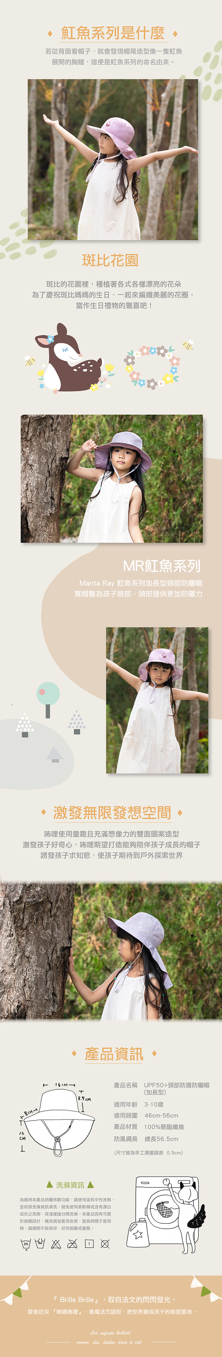 品名:《魟魚系列 Manta Ray Series》斑比花園-頸部防護雙面帽 (加長型)UPF50+ 3-10歲【季末出清】