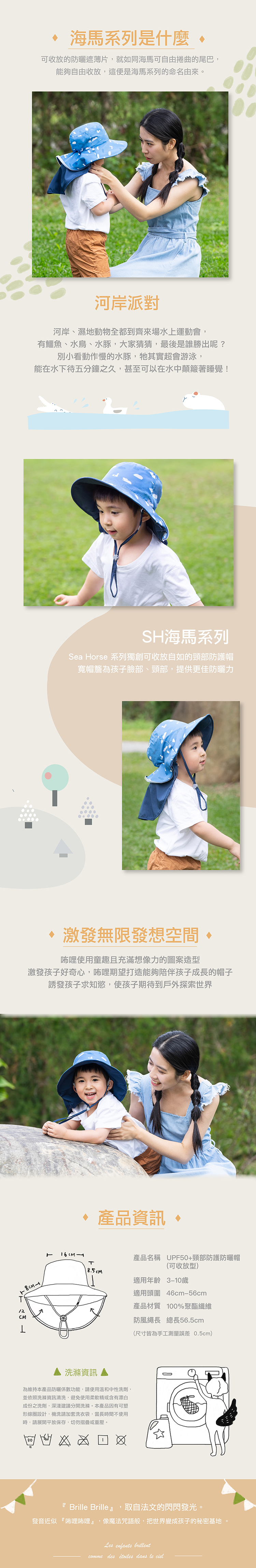 品名:《海馬系列Sea Horse》頸部防護兒童防曬帽 (可收放型) -河岸派對UPF50+【季末出清】