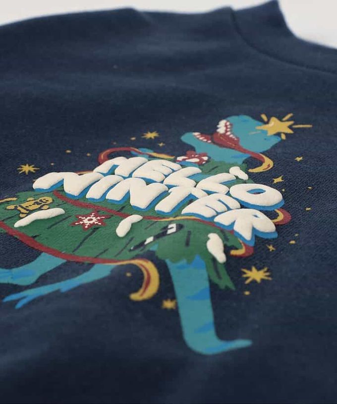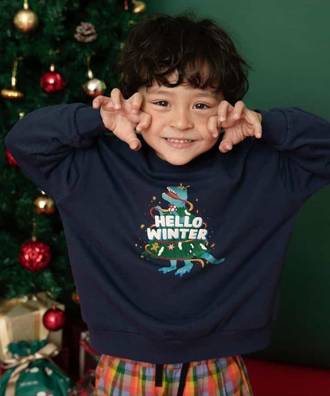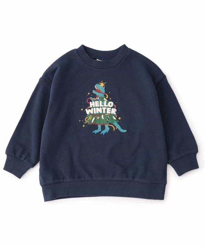 日本 BREEZE - [聖誕限定]純棉裏毛印花長袖上衣-海軍藍