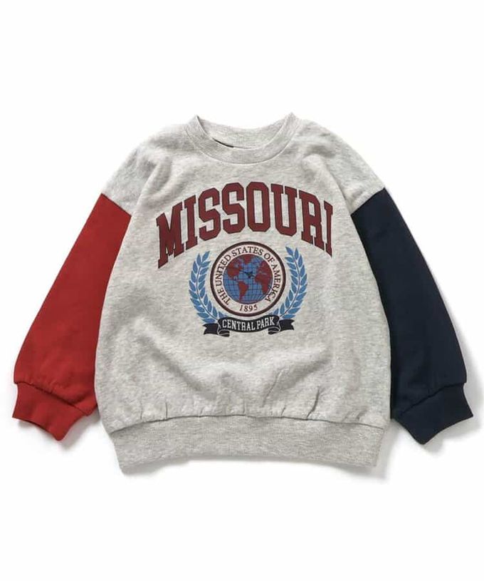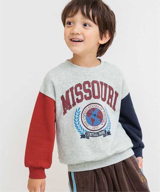 日本 BREEZE - 美式印花純棉裏毛長袖上衣-密蘇里州-撞色袖1