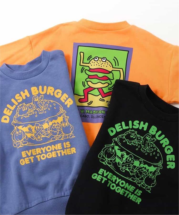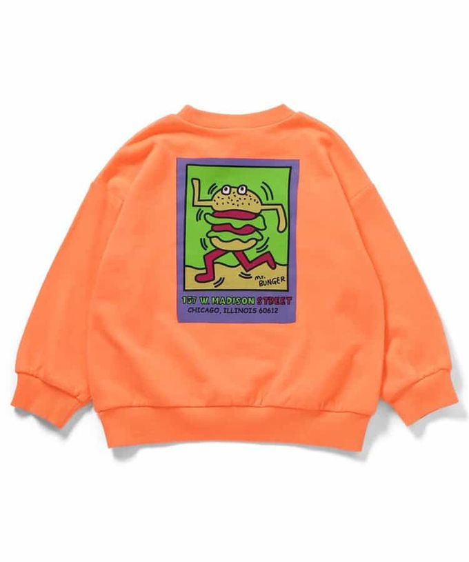 日本 BREEZE - 美式印花純棉裏毛長袖上衣-漢堡人-亮橘